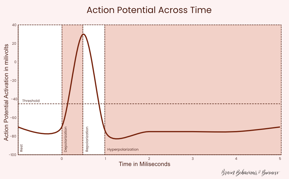 Even your neurons, the cells of the Central Nervous System regulate themselves. To simply describe an electrical and chemical process that’s more complex than the point here, a neuron starts at rest, becomes activated, a negative charge, then becomes deactivated a positive charge, then returns to rest. So it reacts, corrects itself, and returns to rest in approximately 5 milliseconds. After a neuron is activated, it rests for a while, called the refractory period, before it can be activated again. Balance. Or regulation.