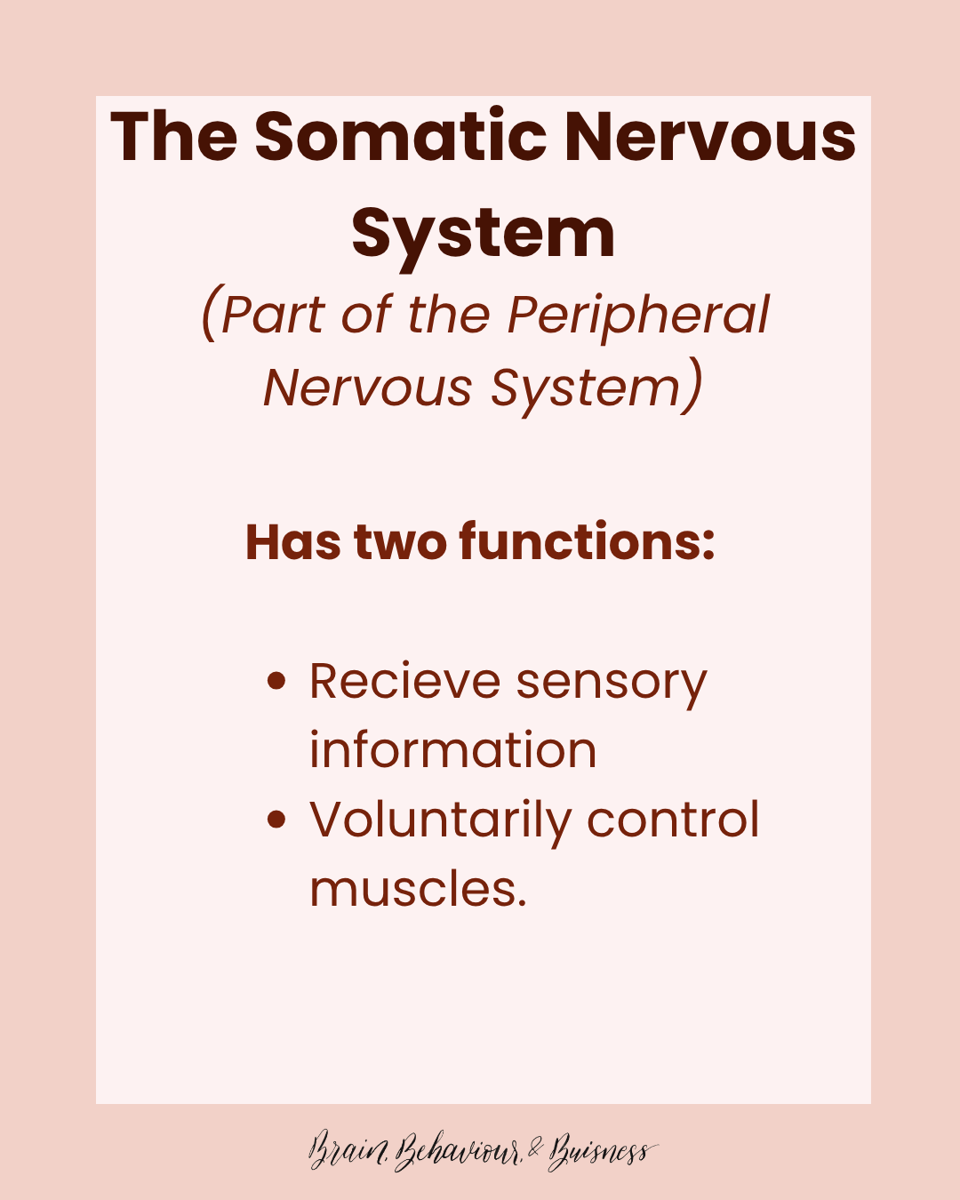 Depending on your source of information, you may also see this called the skeletal nervous system. My guess is that the term somatic is more familiar.