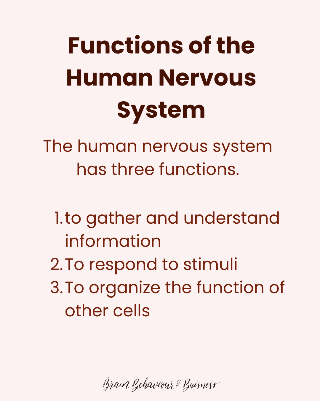 Broadly, the nervous system has 3 functions: